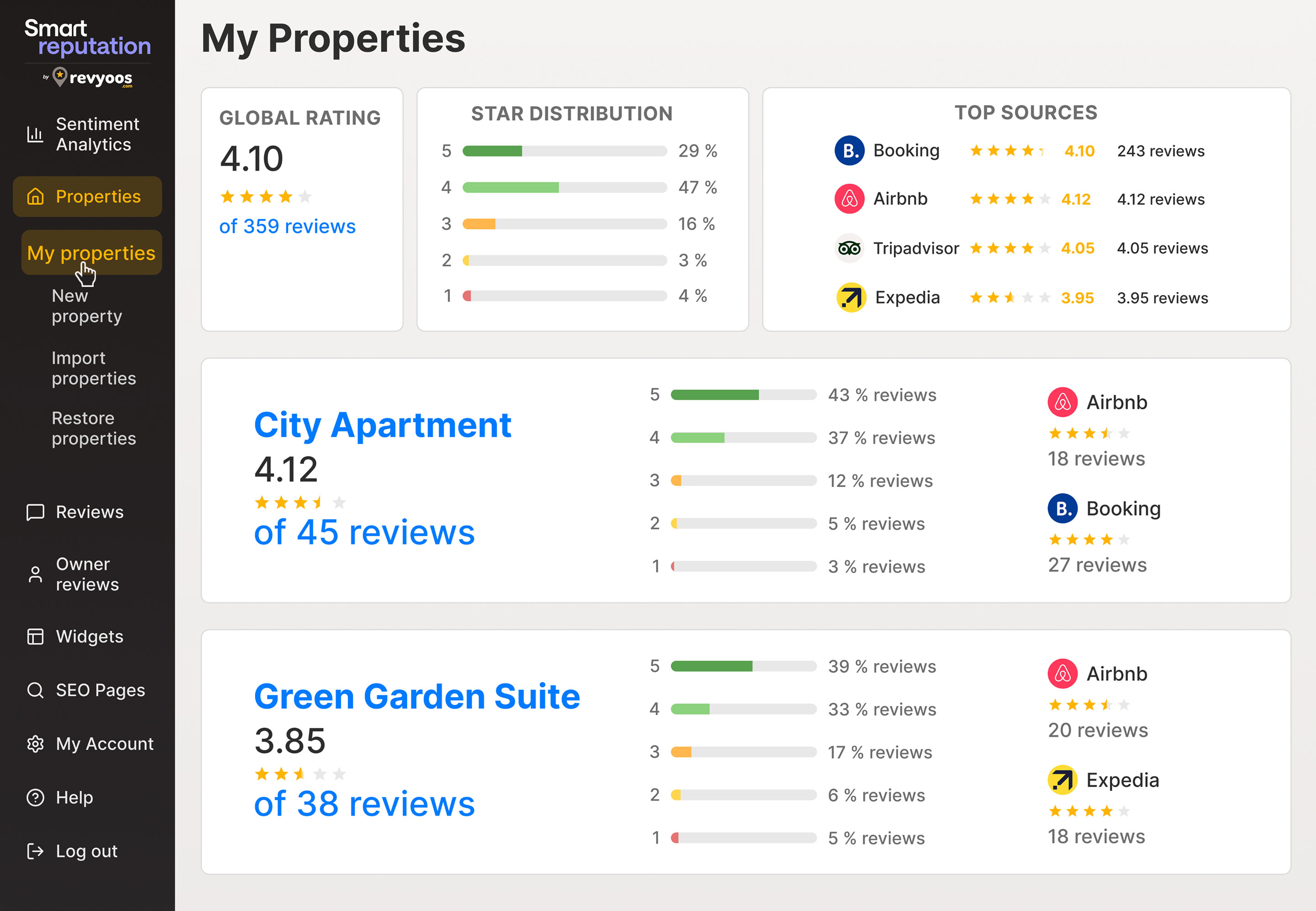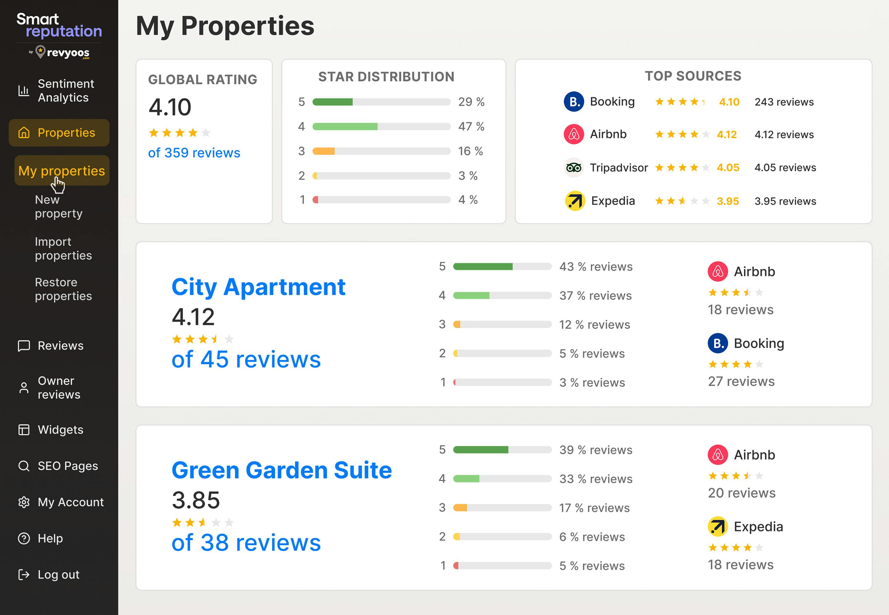 With Smartreputation by Revyoos, you can automatically manage all your reviews and display them on your website to build reputation, trust, and direct bookings.