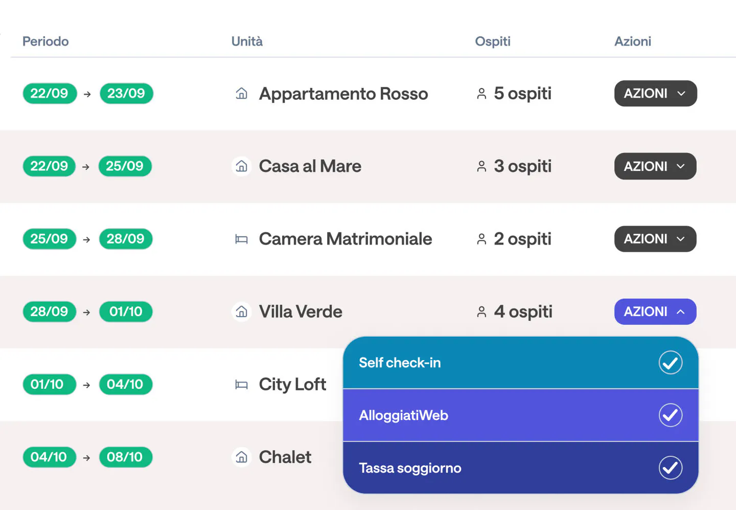 Assegna check-in, check-out e attività giornaliere allo staff.